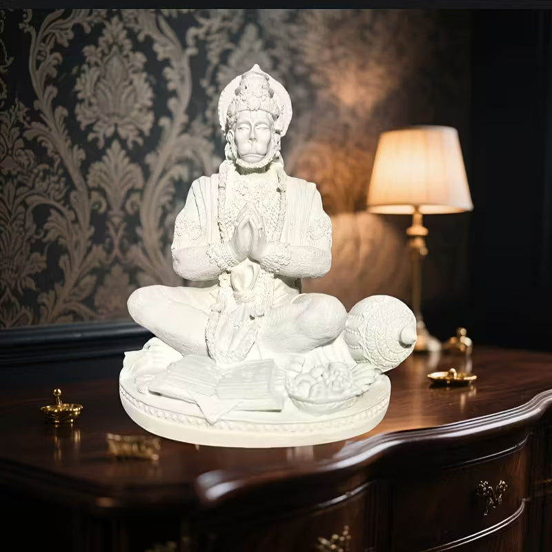 Carved by skilled artisans from premium materials, this exquisite statue captures Hanuman in his noble form — poised with his mace (gada) and ready for service, his posture radiating unwavering devotion and courageous heart. In Hindu tradition, Hanuman represents the triumph of humility, discipline, and selfless service over all obstacles.